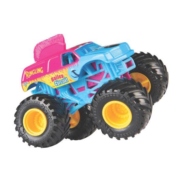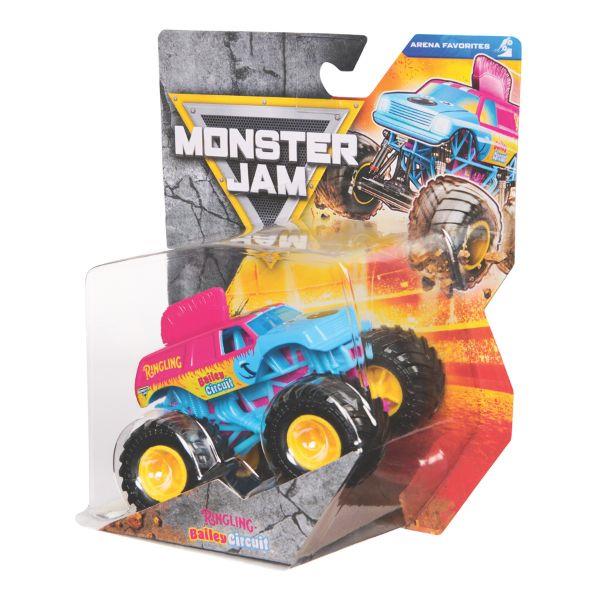Introducing the all-new, official 1:64 scale die-cast Monster Jam monster truck! This lean, mean, Monster Jam machine features awesome graphics and details. With official BKT Tires, stylized rims, and an authentic chassis, this monster truck embodies the style and swagger of its real-life counterpart! Each 1:64 scale toy truck comes complete with a driver molded into the driver's seat and a barrel, ramp, or crushed car accessory play piece (accessory may vary)! Use the accessory to create your own stunts and jumps, just like you've seen in the live shows! This 1:64 scale die-cast Monster Jam truck is just like the real thing - only fun size! And now, with even more trucks to collect (toys each sold separately), you can use the accessories to build different stunt configurations and unleash the epic Monster Jam action again and again! Monster Jam monster truck toys are the perfect gifts for kids ages 3 and up. Bring home your favorite Monster Jam monster trucks and start building your collection today! Features