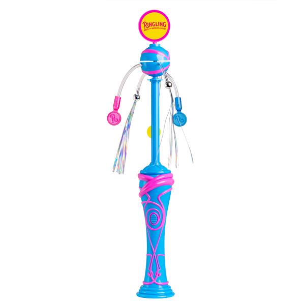 Bring the excitement of the circus to life with the Bailey Light Up Spinner Wand. Designed in bright blue and pink with playful circus detailing, this interactive wand features flexible spinner arms with colorful attachments that move and shimmer as the wand is waved. A branded Ringling topper completes the look for authentic circus flair.